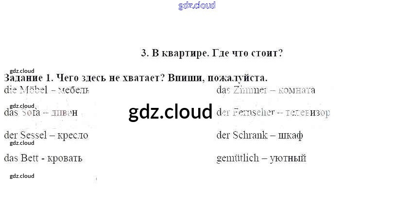 В квартире. Где что стоит Ответы к разделу Мой дом (У меня дома). Что же тут есть по Немецкому языку 4 класс Рабочая тетрадь Бим Просвещение