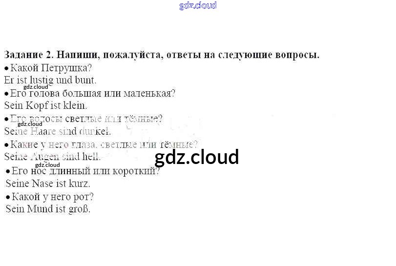 Ответ на задание 2 Рабочая тетрадь Немецкий язык за 4 (четвертый) класс Бим, Рыжова 2020
