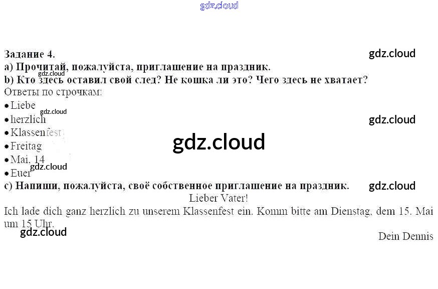 Ответ на задание 4 Рабочая тетрадь Немецкий язык за 4 (четвертый) класс Бим, Рыжова 2020
