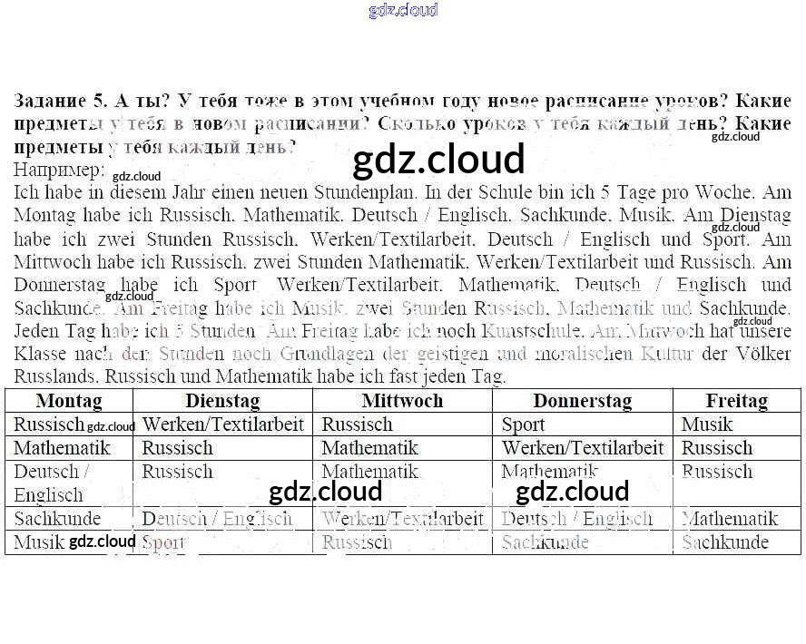 Ответ на задание 5 Учебник Немецкий язык за 4 (четвертый) класс Бим Академический школьный учебник 2014