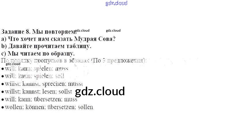 Ответ на задание 8 Учебник Немецкий язык за 4 (четвертый) класс Бим Академический школьный учебник 2014