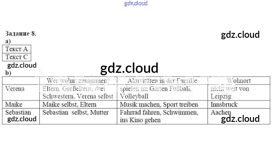 Ответ на задание 8 Рабочая тетрадь Немецкий язык за 5 (пятый) класс Аверин, Рорман, Джин Horizonte 2020 ФГОС онлайн и без номера телефона.