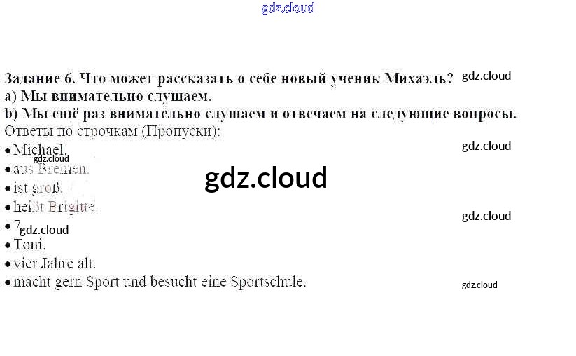 Ответ на задание 6 Учебник Немецкий язык за 5 (пятый) класс Бим 2019 ФГОС онлайн и без номера телефона.