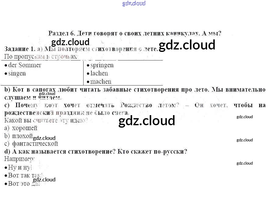 Раздел 6 Ответы к теме Здравствуй, 5 класс по Немецкому языку 5 класс Учебник Бим Просвещение