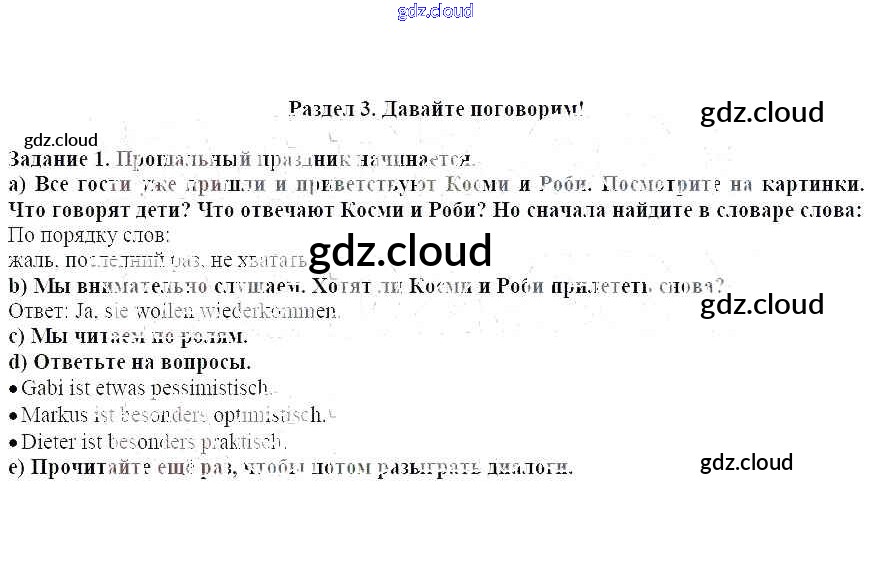 Раздел 3 Ответы к главе 9 по Немецкому языку 5 класс Учебник Бим Просвещение