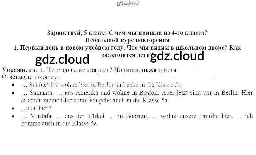 Ответ на задание 1 Рабочая тетрадь Немецкий язык  за 5 (пятый) класс Бим   2005