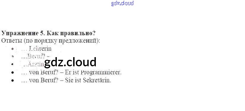 Ответ на задание 5 Рабочая тетрадь Немецкий язык  за 5 (пятый) класс Бим   2005