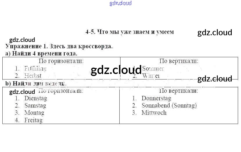 Ответ на задание 1 Рабочая тетрадь Немецкий язык  за 5 (пятый) класс Бим   2005