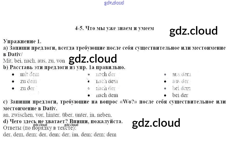 Ответ на задание 1 Рабочая тетрадь Немецкий язык  за 5 (пятый) класс Бим   2005