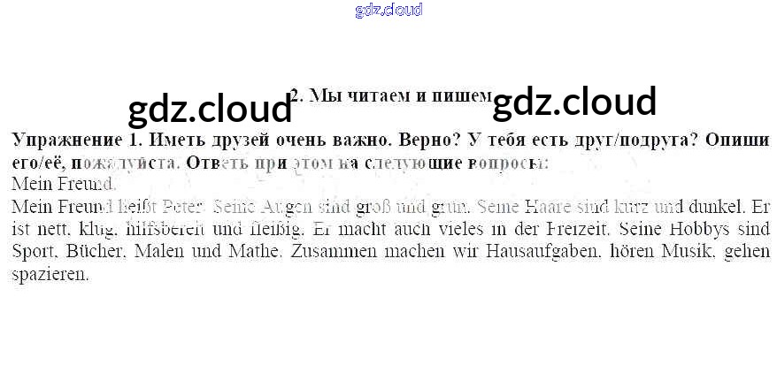 Ответ на задание 1 Рабочая тетрадь Немецкий язык  за 5 (пятый) класс Бим   2005