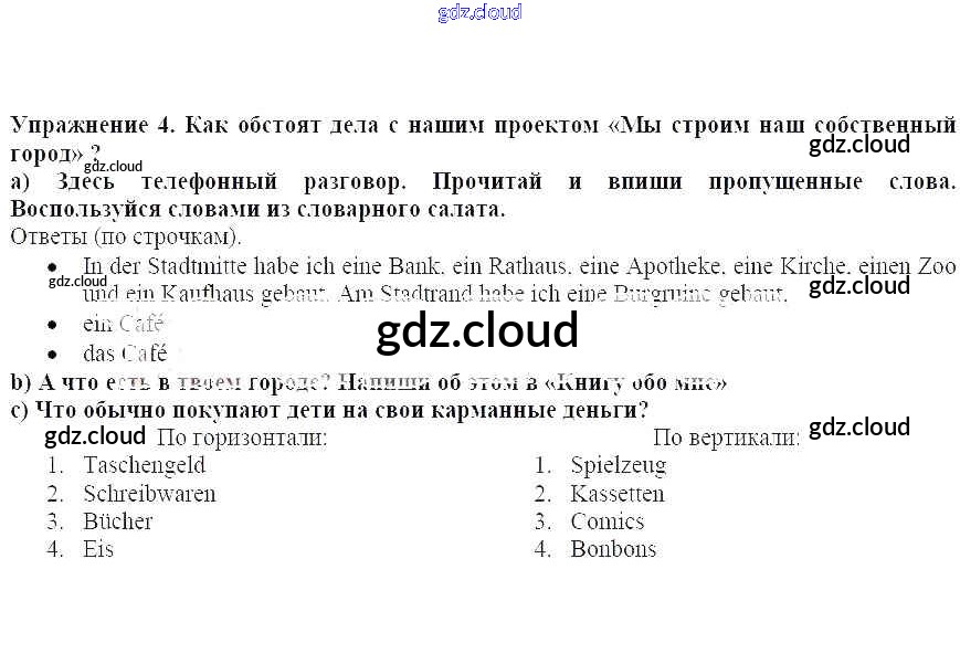 Ответ на задание 4 Рабочая тетрадь Немецкий язык  за 5 (пятый) класс Бим   2005