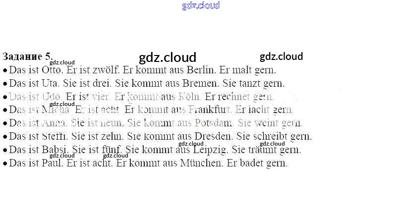 Ответ на задание 5 Рабочая тетрадь Немецкий язык за 5 (пятый) класс Радченко, Хебелер, Стёпкин Alles Klar! 2015 ФГОС онлайн и без номера телефона.