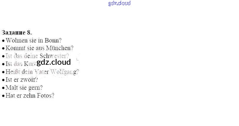 Ответ на задание 8 Рабочая тетрадь Немецкий язык за 5 (пятый) класс Радченко, Хебелер, Стёпкин Alles Klar! 2015 ФГОС онлайн и без номера телефона.