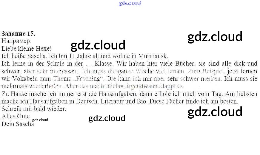 Ответ на задание 15 Рабочая тетрадь Немецкий язык за 5 (пятый) класс Радченко, Хебелер, Стёпкин Alles Klar! 2015 ФГОС онлайн и без номера телефона.