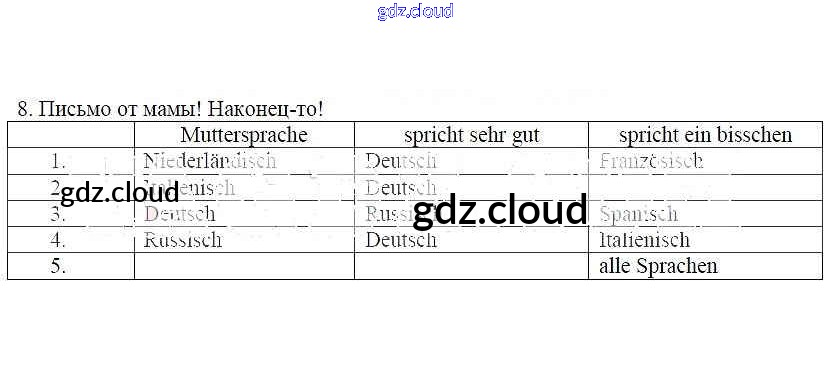 Ответ на задание 8 Рабочая тетрадь Немецкий язык  за 5 (пятый) класс Яцковская Wunderkinder  2019 Часть 1, 2, 3, 4