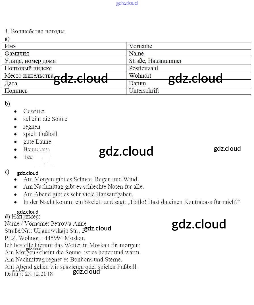 Ответ на задание 4 Рабочая тетрадь Немецкий язык  за 5 (пятый) класс Яцковская Wunderkinder  2019 Часть 1, 2, 3, 4