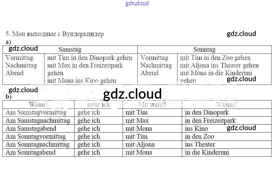 Ответ на задание 5 Рабочая тетрадь Немецкий язык  за 5 (пятый) класс Яцковская Wunderkinder  2019 Часть 1, 2, 3, 4