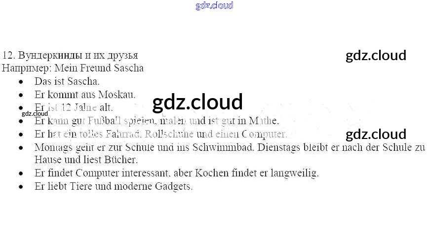 Ответ на задание 12 Рабочая тетрадь Немецкий язык  за 5 (пятый) класс Яцковская Wunderkinder  2019 Часть 1, 2, 3, 4