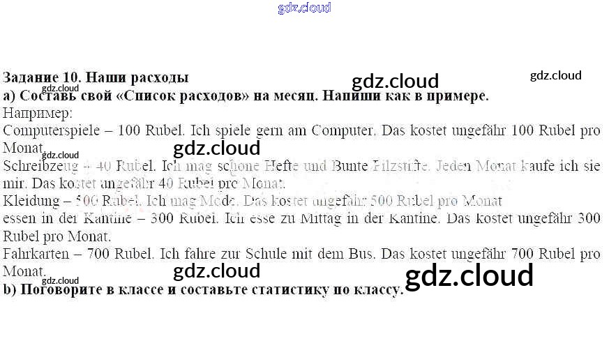 Ответ на задание 10 Учебник Немецкий язык за 5 (пятый) класс Аверин, Джин, Рорман, Збранкова Horizonte 2016 ФГОС онлайн и без номера телефона.