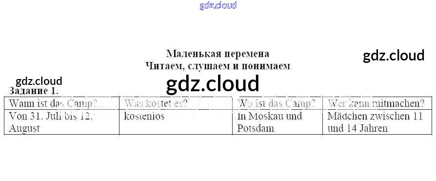 Ответ на задание 1 Рабочая тетрадь Немецкий язык за 6 (шестой) класс Аверин, Джин, Рорман Horizonte 2016