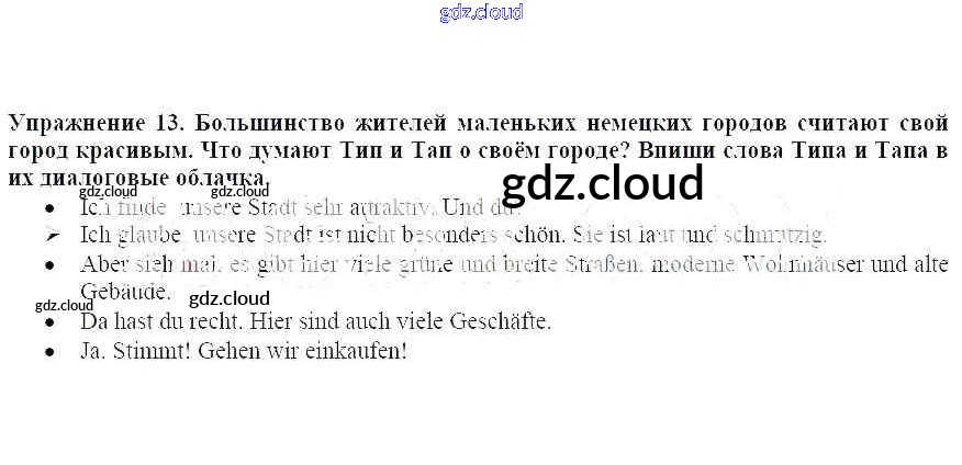 Ответ на задание 13 Рабочая тетрадь Немецкий язык за 6 (шестой) класс Бим, Фомичева 2008