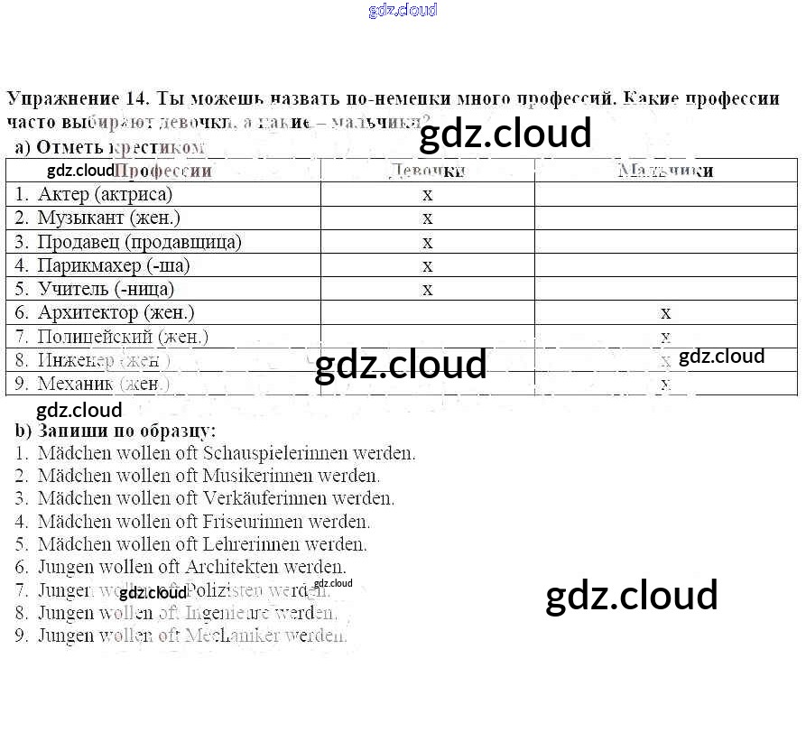 Ответ на задание 14 Рабочая тетрадь Немецкий язык за 6 (шестой) класс Бим, Фомичева 2008