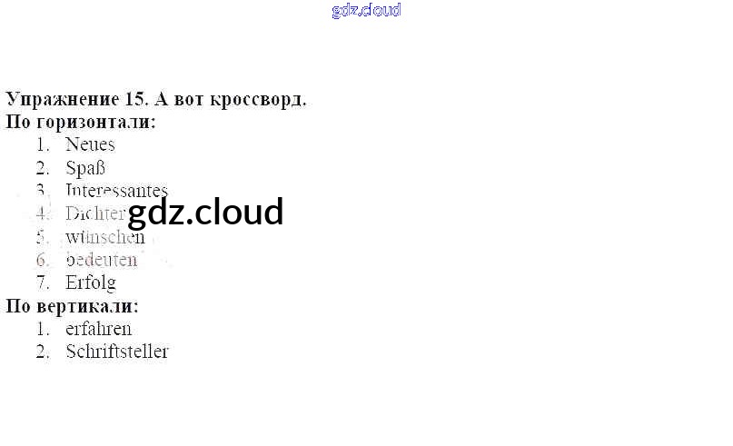 Ответ на задание 15 Рабочая тетрадь Немецкий язык за 6 (шестой) класс Бим, Фомичева 2008