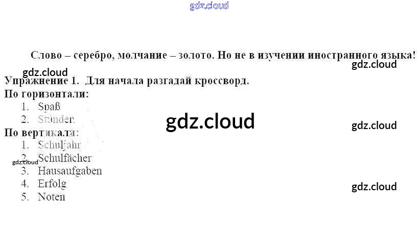 Слово-серебро, молчание-золото Ответы к главе 1. Начало занятий в школе по Немецкому языку 6 класс Рабочая тетрадь Бим Просвещение