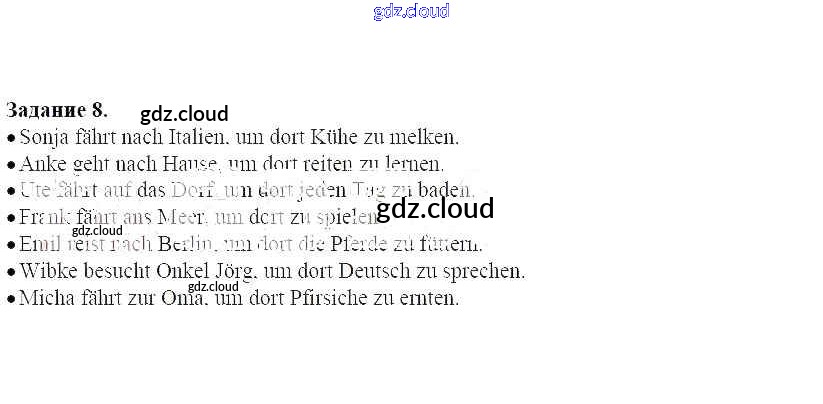 Ответ на задание 8 Рабочая тетрадь Немецкий язык за 6 (шестой) класс Радченко, Хебелер Alles Klar! 2015 Часть 1, 2