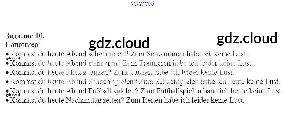 Ответ на задание 10 Рабочая тетрадь Немецкий язык за 6 (шестой) класс Радченко, Хебелер Alles Klar! 2015 Часть 1, 2