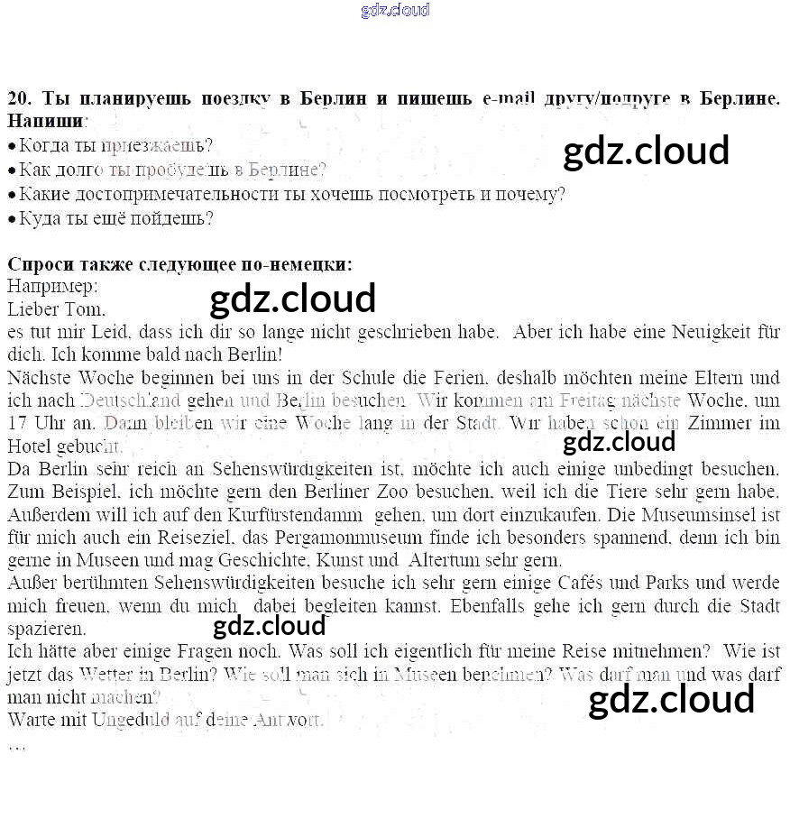 Ответ на задание 20 Рабочая тетрадь Немецкий язык за 6 (шестой) класс Радченко, Лясковская Wunderkinder 2012 онлайн и без номера телефона.