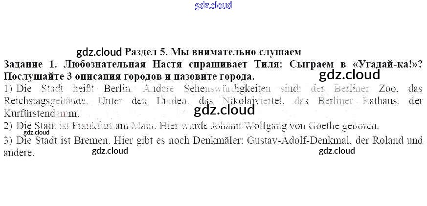 Раздел 5 Ответы к главе 6 (Разделы) по Немецкому языку 6 класс Учебник Бим Часть 1, 2 Просвещение