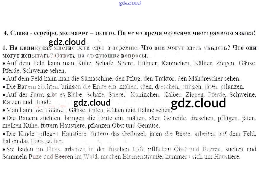 Слово - серебро, молчание – золото. Но не во время изучения иностранного языка! Ответы к Главе 4. В деревне тоже есть много интересного по Немецкому языку 7 класс Рабочая тетрадь Бим Просвещение