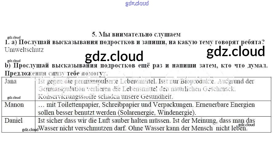 Мы внимательно слушаем Ответы к Главе 5. Защита окружающей среды – самая актуальная проблема современности. Не так ли по Немецкому языку 7 класс Рабочая тетрадь Бим Просвещение