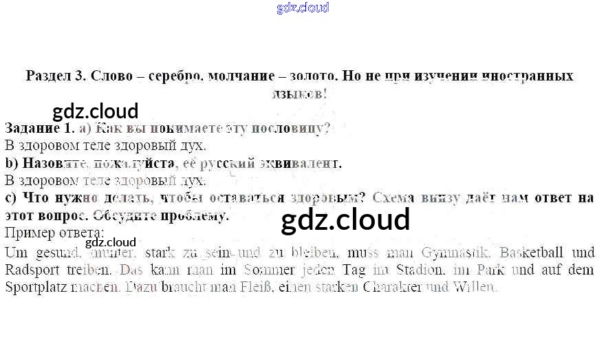 Раздел 3. Слово - серебро, молчание - золото. Но не при изучении иностранных языков! Ответы к главе 6. В здоровом теле - здоровый дух по Немецкому языку 7 класс Учебник Бим Академический школьный учебник Просвещение