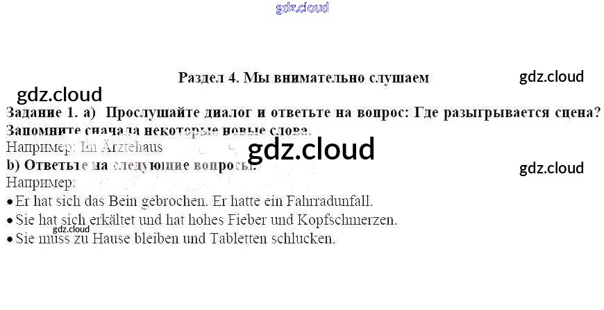 Раздел 4. Мы внимательно слушаем Ответы к главе 6. В здоровом теле - здоровый дух по Немецкому языку 7 класс Учебник Бим Академический школьный учебник Просвещение