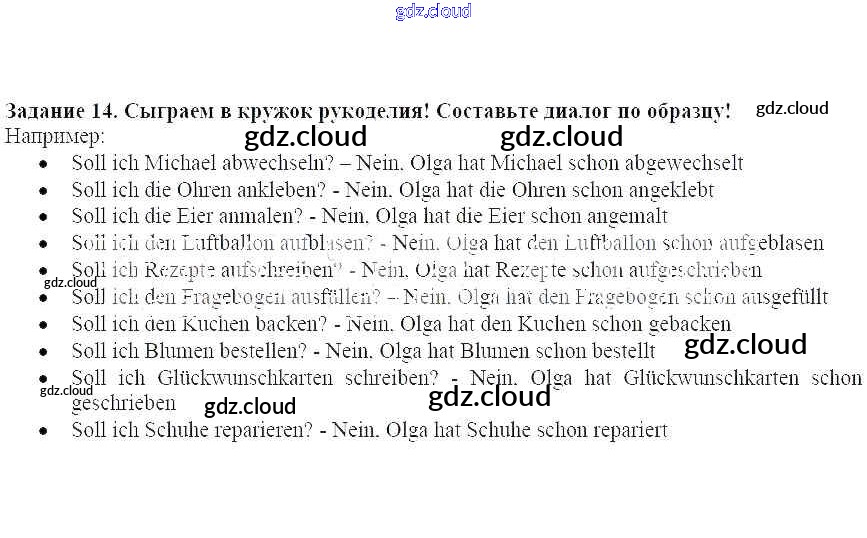 Ответ на задание 14 Учебник Немецкий язык за 8 (восьмой) класс Радченко, Хебелер Alles Klar! 2015 ФГОС онлайн и без номера телефона.