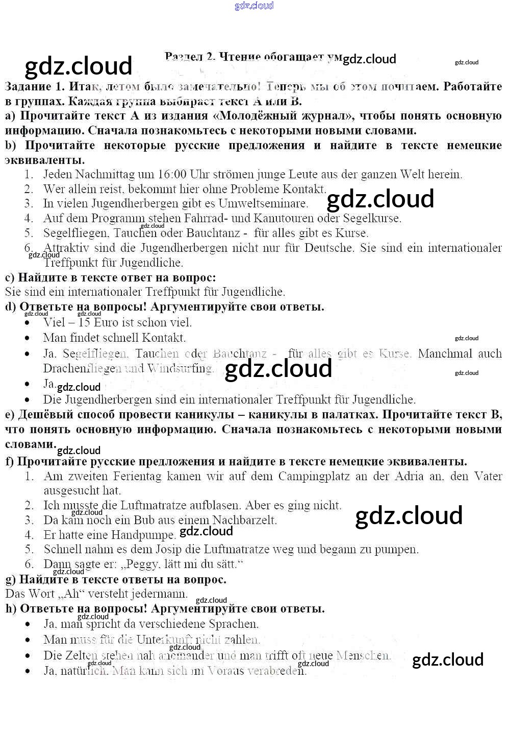 Раздел 2 Ответы к главе №1. Летом было замечательно! по Немецкому языку 8 класс Учебник Бим Просвещение