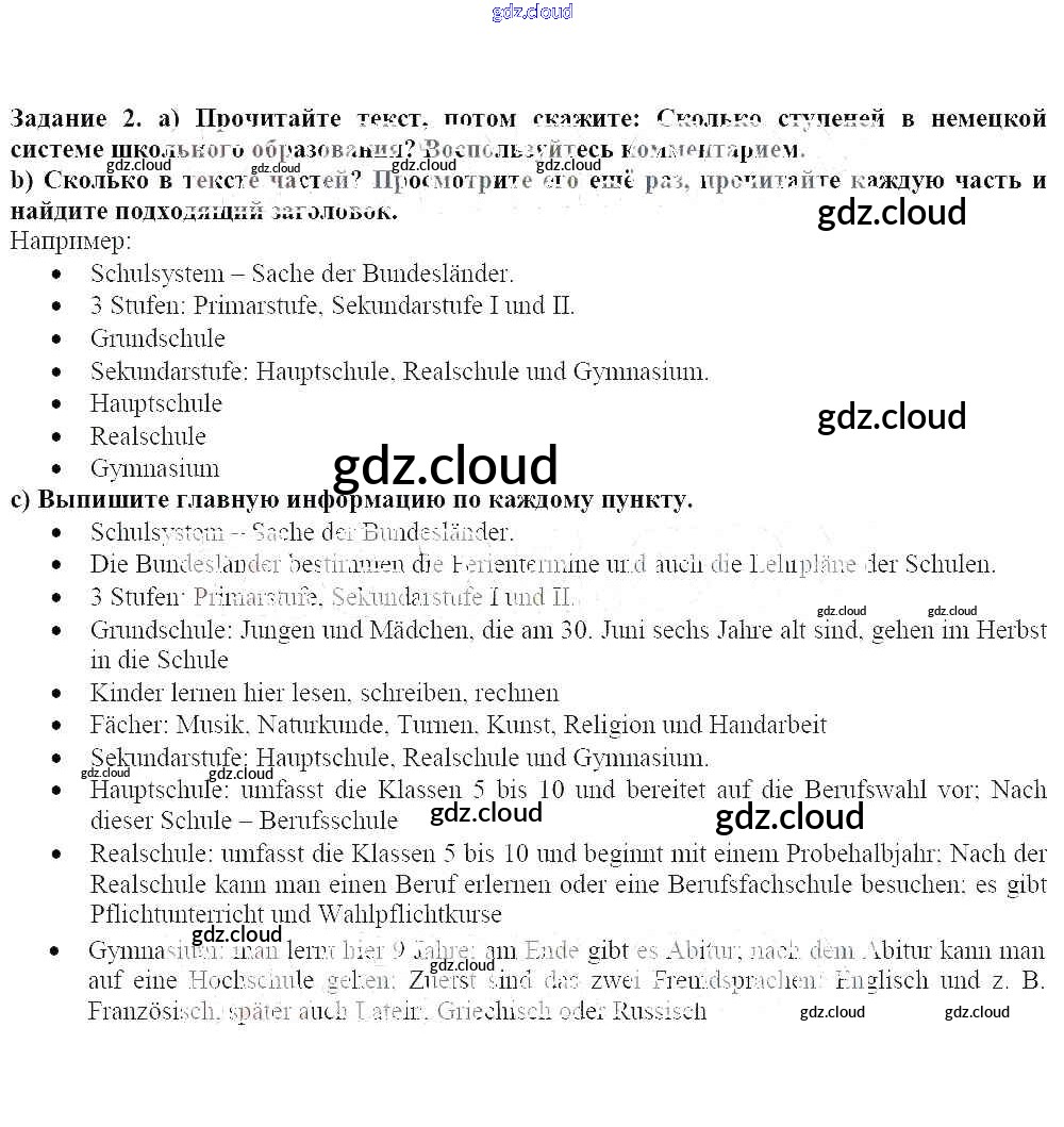Ответ на задание 2 Учебник Немецкий язык за 8 (восьмой) класс Бим, Садомова, Крылова, Санникова, Картова 2014