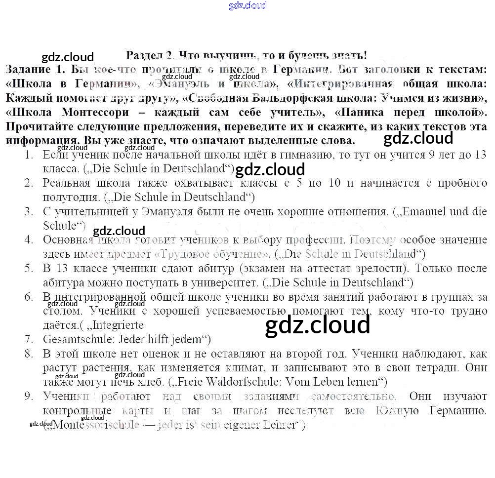 Раздел 2 Ответы к главе №2. Но теперь давно уже школа! по Немецкому языку 8 класс Учебник Бим Просвещение