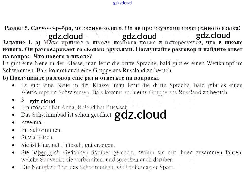 Раздел 5 Ответы к главе №2. Но теперь давно уже школа! по Немецкому языку 8 класс Учебник Бим Просвещение