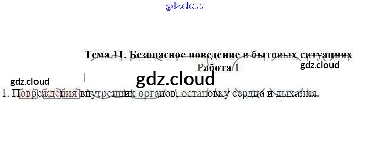 Работа 1 Ответы к теме: 11. Безопасное поведение в бытовых ситуациях по ОБЖ 5 класс Рабочая тетрадь Демидов Лицей