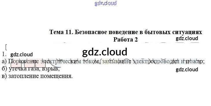 Работа 2 Ответы к теме: 11. Безопасное поведение в бытовых ситуациях по ОБЖ 5 класс Рабочая тетрадь Демидов Лицей