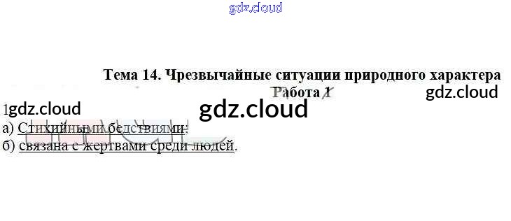 Работа 1 Ответы к теме: 14. Чрезвычайные ситуации природного характера по ОБЖ 5 класс Рабочая тетрадь Демидов Лицей