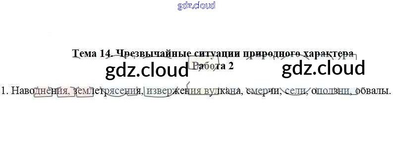 Работа 2 Ответы к теме: 14. Чрезвычайные ситуации природного характера по ОБЖ 5 класс Рабочая тетрадь Демидов Лицей