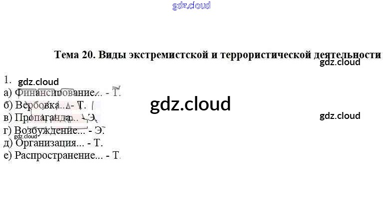Ответы к теме: 20. Виды экстремистской и террористической деятельности по ОБЖ 5 класс Рабочая тетрадь Демидов Лицей
