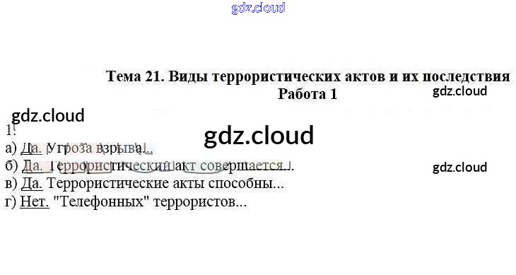 Работа 1 Ответы к теме: 21. Виды террористических актов и их последствия по ОБЖ 5 класс Рабочая тетрадь Демидов Лицей