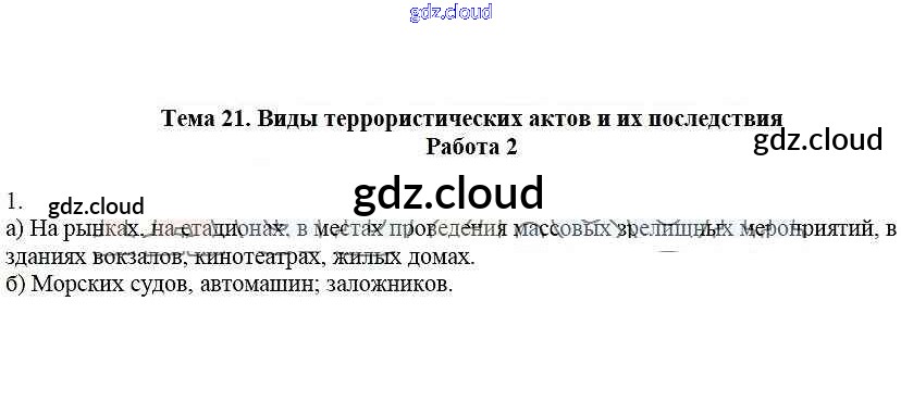 Работа 2 Ответы к теме: 21. Виды террористических актов и их последствия по ОБЖ 5 класс Рабочая тетрадь Демидов Лицей