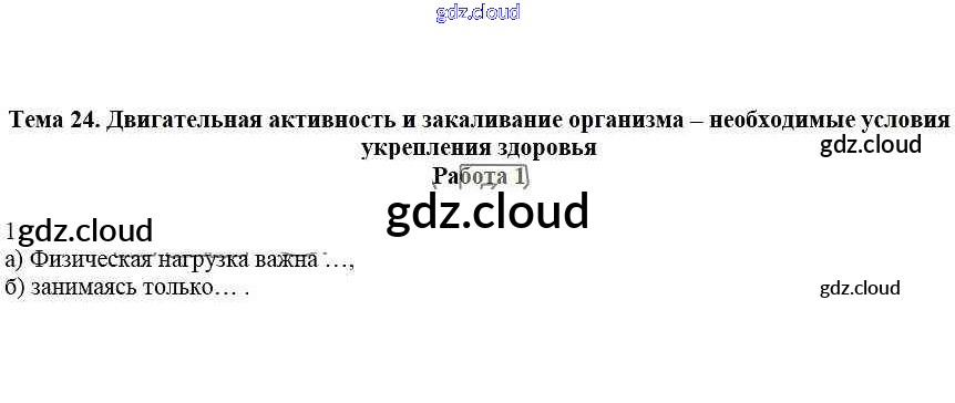 Работа 1 Ответы к теме: 24. Двигательная активность и закаливание организма – необходимые условия укрепления здоровья по ОБЖ 5 класс Рабочая тетрадь Демидов Лицей