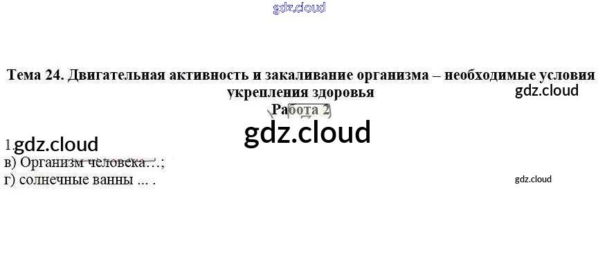Работа 2 Ответы к теме: 24. Двигательная активность и закаливание организма – необходимые условия укрепления здоровья по ОБЖ 5 класс Рабочая тетрадь Демидов Лицей